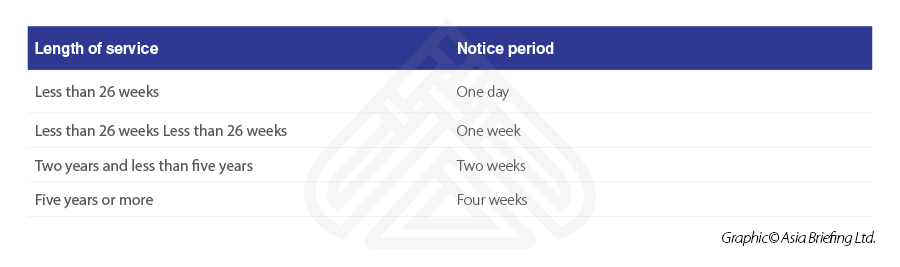 If an employment contract did not specify a notice period, then the notice period is dependent on the length of the employee’s service.