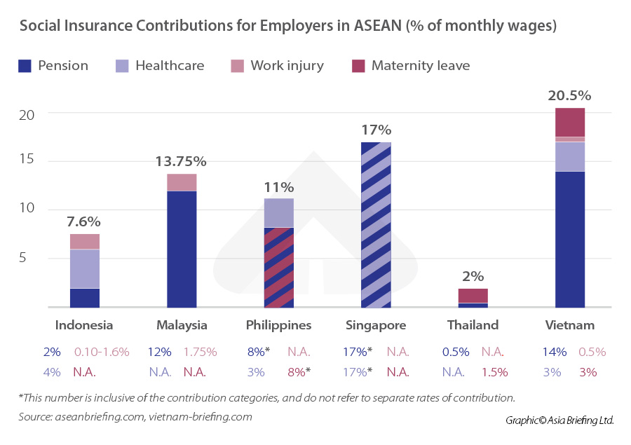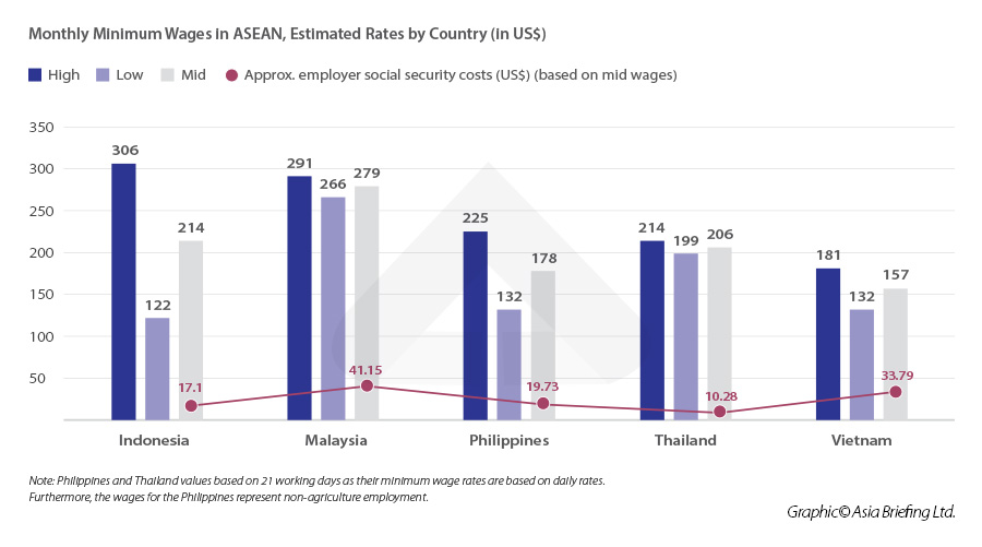 Moreover, foreign investors should be aware that ASEAN governments are increasing social protection expenditure and businesses now must consider the expansion of coverage in areas such as pensions, health coverage, and welfare assistance when assessing labor costs. These costs will vary considering ASEAN members are heterogeneous in their economic structures, development, and thus prioritization of social protection goals.