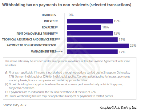Under the Withholding Tax Act, a tax resident has a legal obligation to withhold a certain percentage of the payment when making payments of a specified nature to a non-resident and pay the amount withheld to IRAS.