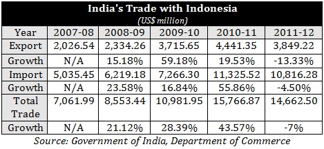 In 2010, India implemented a FTA with Indonesia which cut import duties on products such as seafood, chemicals and apparel. In return Indonesia slashed import duties on Indian goods. By 2011, India and Indonesia had signed a total of 18 agreements in the mining, infrastructure and manufacturing sectors worth a total of $15.1 billion, in addition to a FTA on goods.