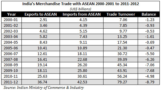 For a more detailed representation of the trade flows between India and ASEAN, please see the table below: