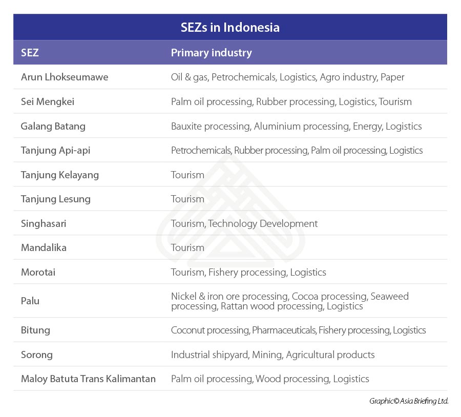 Indonesia operates 13 special economic zones (SEZ), which offer growing opportunities for investments in manufacturing, agriculture, natural resources, and tourism.