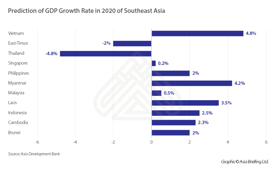 Regardless of the impact of the COVID-19 pandemic, Vietnam is forecast to be one of the fastest-growing economies in Southeast Asia. According to the ADB’s Asian Development Outlook 2020 report published on April 3, 2020, Vietnam’s economic growth will decline sharply to 4.8 percent in 2020 but bounce back up to 6.8 percent in 2021, provided the pandemic is contained.We look at the forecast GDP growth rates of each country in Southeast Asia as per ADB: