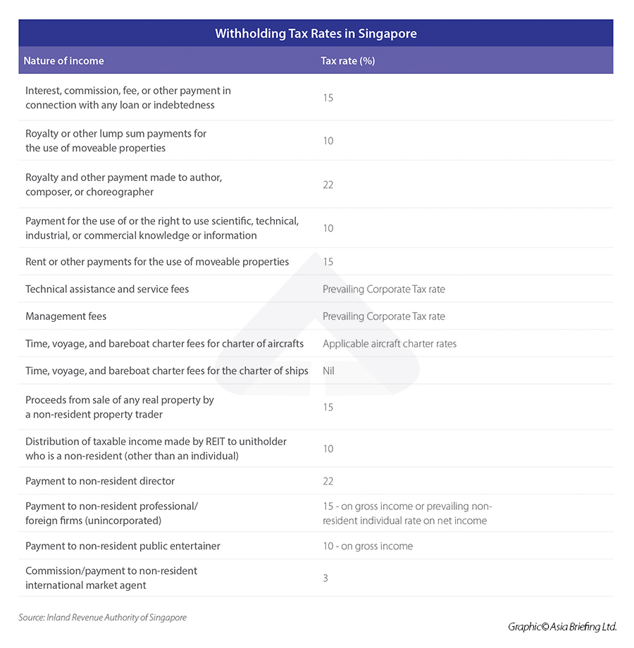 Companies, individuals, and other Singapore-based entities must pay withholding tax when making a payment to a non-resident.