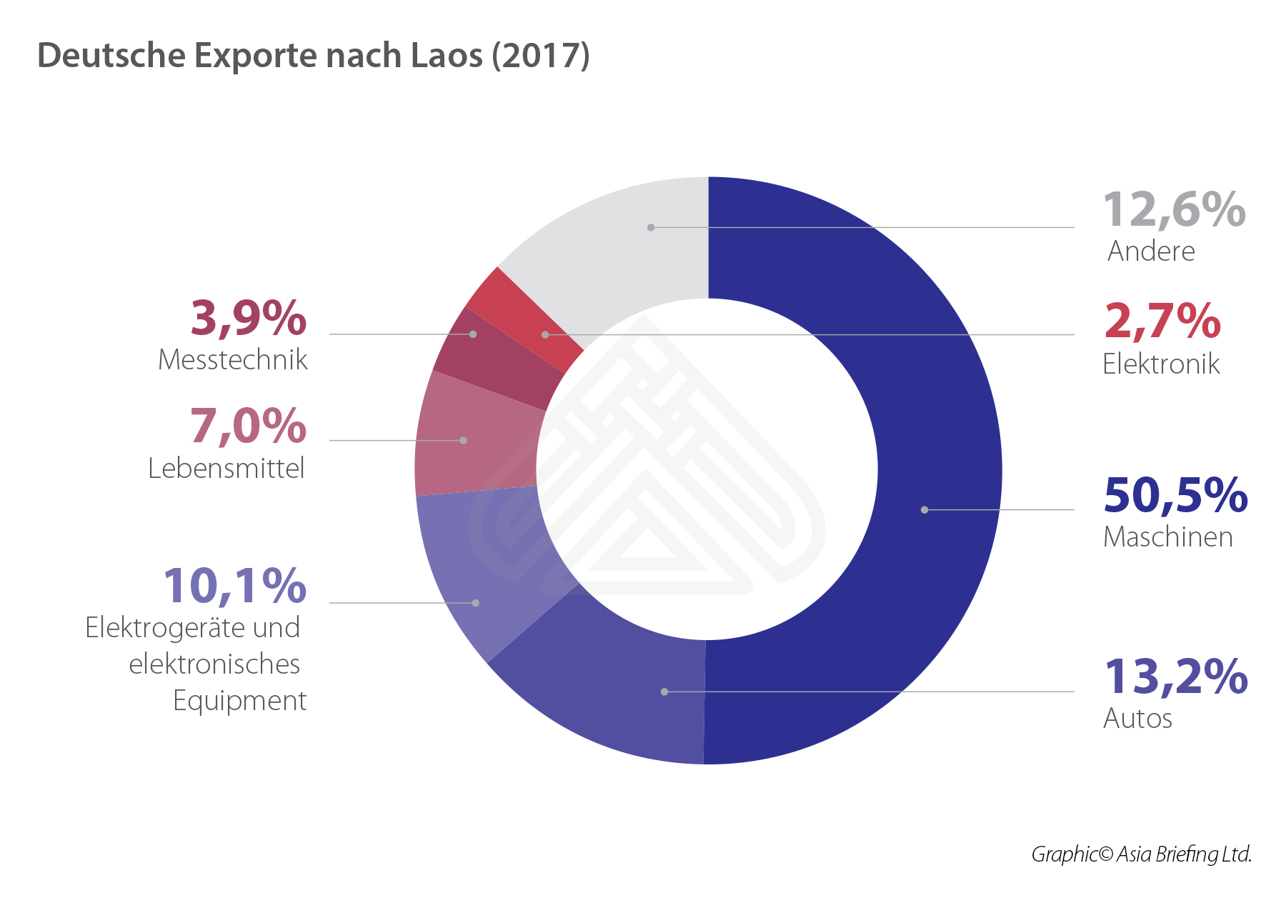 Deutsche Importe aus Laos hielten sich in den letzten Jahren relativ konstant, mit importierten Produkten im Wert von 89 Millionen USD im Jahr 2017. Deutsche Exporte nach Laos sanken 2017 jedoch auf 22,8 Millionen USD. Deutsche Importe werden von Textilien dominiert, welche etwa 85% der gesamten Imports ausmachen. Generell sind deutsche Unternehmen in Laos bisher jedoch nicht gut aufgestellt.
