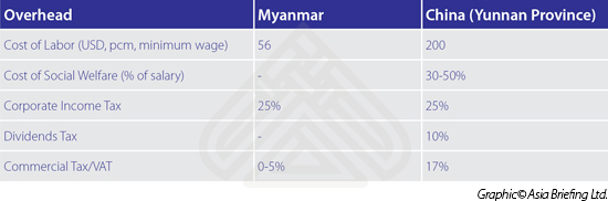 We can compare Myanmar and China in terms of average operational costs as follows: