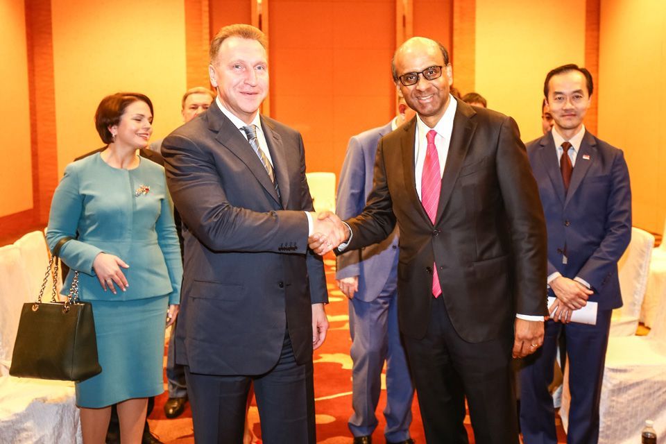 Singapore Deputy PM Tharman Shanmugaratnam (right) with Russian Deputy PM Igor Shuvalov (left)