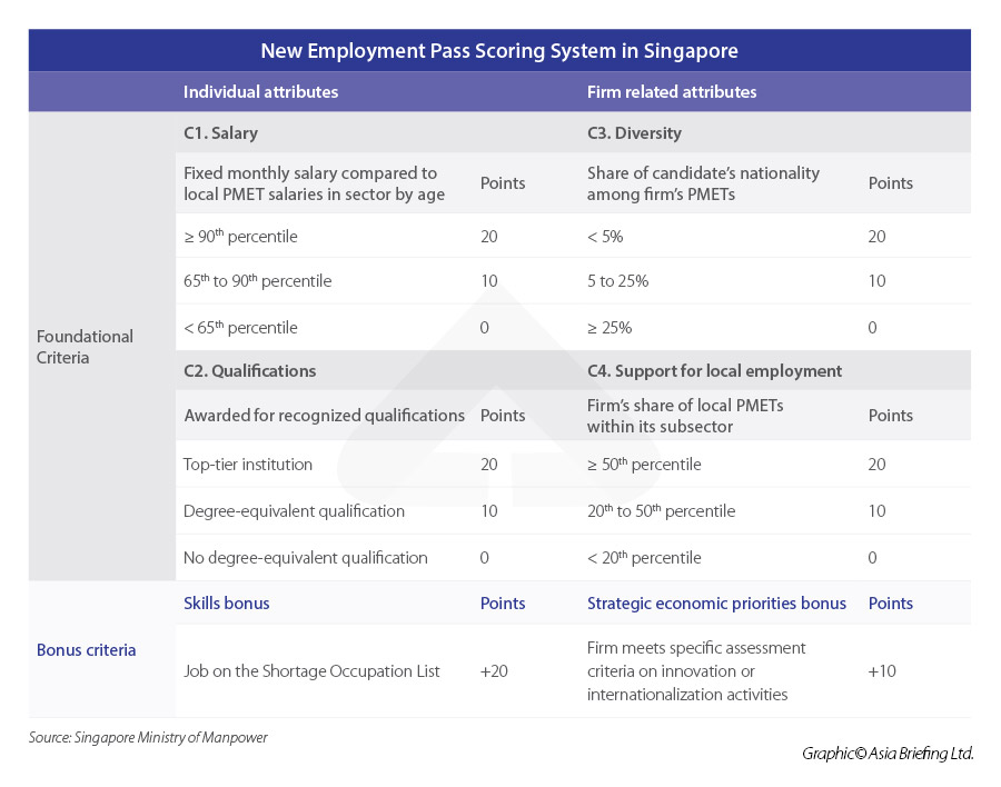 Singapore will introduce a new points system for Employment Pass (EP) applicants on September 1, 2023, and for renewal applicants from September 1, 2024.