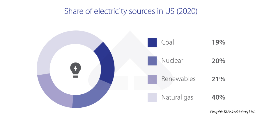 Natural gas still boasts the number one position as the leading generator of electricity in the US, claiming 40 percent, while renewables, coal, and nuclear power share relatively equal proportions at 21 percent, 19 percent, and 20 percent respectively.