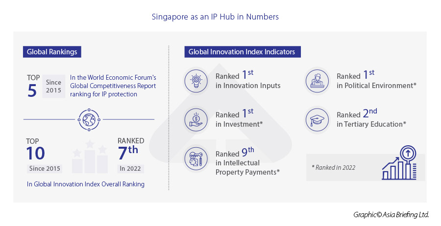 Singapore has a strong and transparent legal system for protecting intellectual property (IP) rights, which is overseen by the Intellectual Property Office of Singapore (IPOS). The country has a specialized IP court to handle complex IP cases, as well as a WIPO Arbitration and Mediation Center, the only office of the World Intellectual Property Organization (WIPO) outside of Geneva.