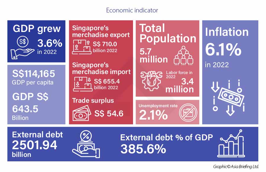 The city-state has maintained a steady economic growth over the past five years. Singapore reported a GDP of US$599 billion at the current market price in 2020, and is projected to trend around S$ 616.33 billion (US $449 billion) in 2023.